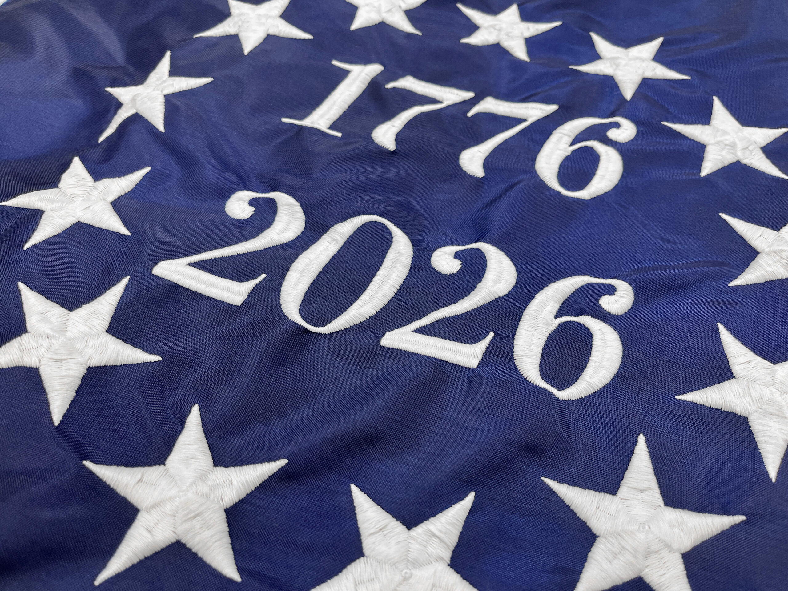 A made in America 3’x5′ Betsy Ross with “1776 – 2026” in the center of the star field to commemorate our nations 250th anniversary.